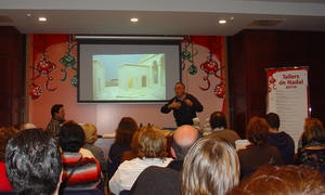 BONA ACOLLIDA DELS TALLERS Una bon nombre d'aficionats al pessebrisme es van acollir a la sala de l'àmbit cultural del Corte Inglés. Entre les dues jornades van assistir-hi més d'un centenar de persones que van seguir amb atenció les explicacions dels ponents. Al final es va obrir un torn obert de paraules on molts dels assistents van poder consultar diferents aspectes relacionats, tant amb els pessebres populars com amb els diorames.